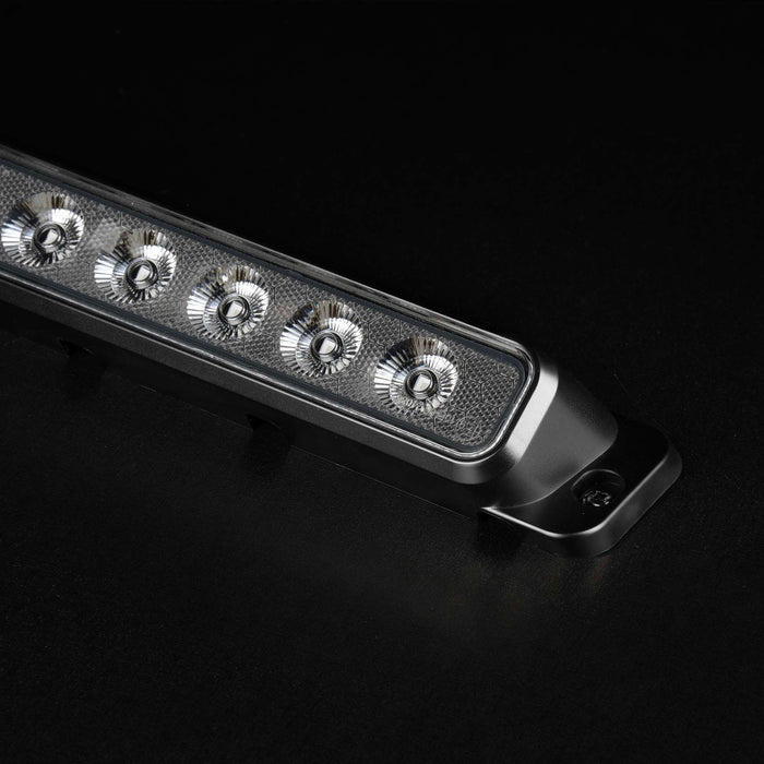 Thanks to its dimmable function, you can flexibly reduce the light output by up to 50% and perfectly adapt it to your requirements. The slim design (566 × 52.8 × 43.9 mm), low weight, and 2500 mm long cable enable versatile and easy mounting on a wide variety of vehicles.